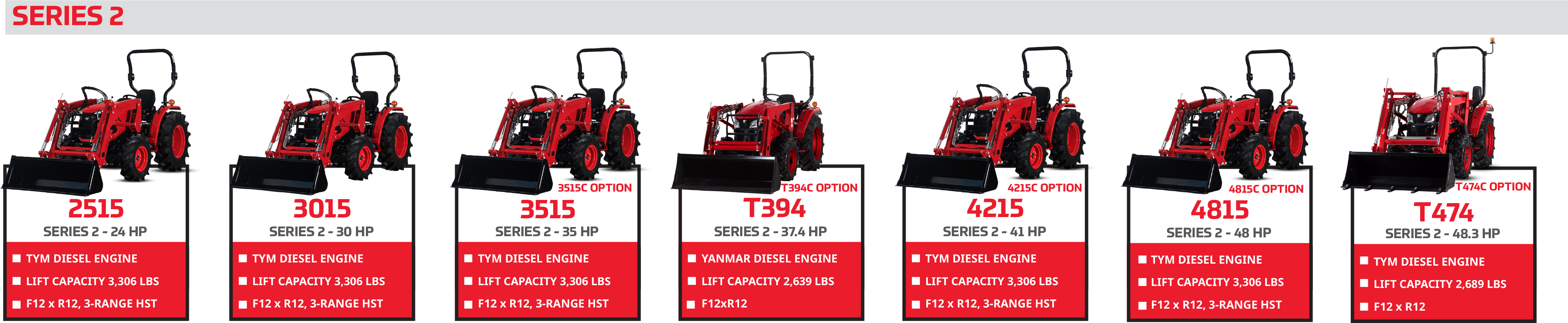 Series 2: 24 - 48.3 hp Compact and easy-to-operate with higher power output and greater implement compatibility.