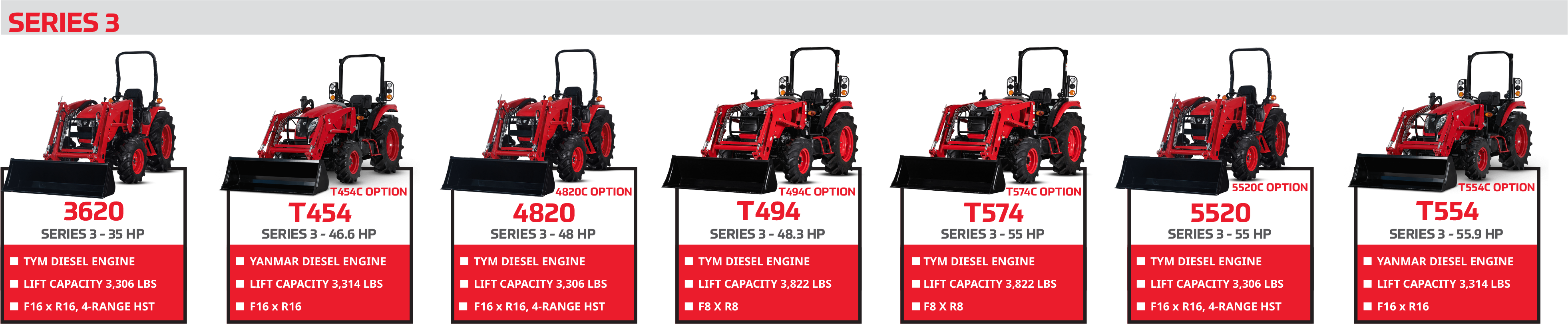 Series 3: 35 - 58 hp Powerful yet economical, designed for demanding tasks in small spaces.